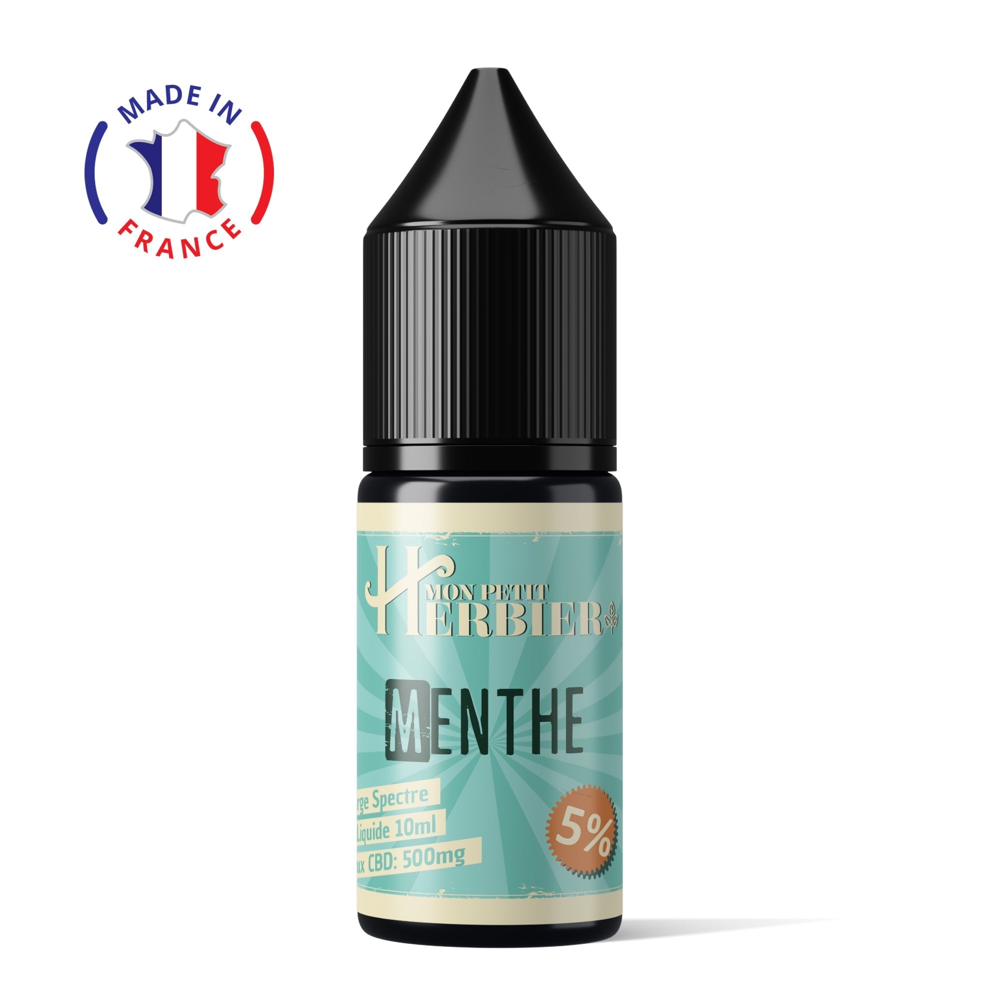 Le e-liquide Menthe par Mon Petit Herbier contient le cannabidiol du spectre large (Broad Spectrum). Il propose 3 dosages différents, à choisir selon vos besoins et préférences : 1% (100 mg), 5% (500 mg) ou 10% (1000 mg).